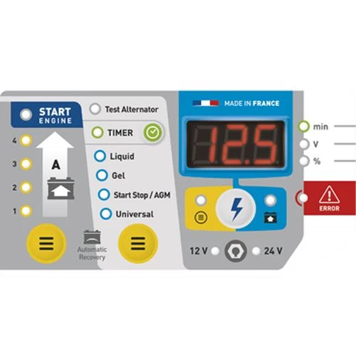 Il possède une fonction TIMER qui permet de programmer une charge en toute sécurité et délivre du courant uniquement lorsqu’on met le contact du véhicule. Le démarreur détecte automatiquement les batteries détériorées ou sulfatées, et il ne fournira pas de courant pour ne pas endommager l’électronique du véhicule.