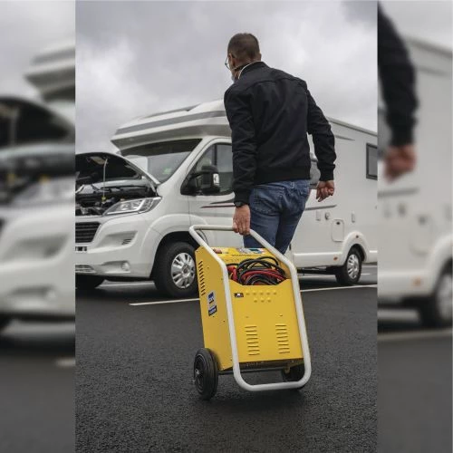 Le chargeur démarreur automatique STARTIUM est conçu pour batteries 12 et 24 V, et grâce au profil de charge IWuOu (charge optimale), il assure une charge rapide à 100 % de tous les types de batteries au plomb : liquide, gel, AGM, Start / stop, calcium, VRLA, EFB… Comme il est automatique, la charge est sans surveillance avec maintien de la tension en fin de cycle (Floating), et peut rester connectée à la batterie du véhicule en toute sécurité.