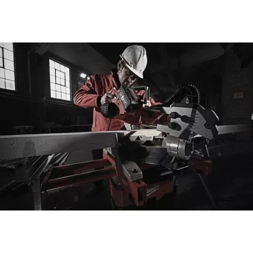 Cette scie à onglet radiale sans fil de la marque Milwaukee est dotée d’un moteur à 2 pôles offrant une vitesse de 2700 tr/min afin de garantir une coupe rapide. Elle bénéficie également d’un double rail en acier pour garantir des coupes linéaires précises et identiques à chaque coupe. Cet outil est muni d’un laser réglable pour un alignement parfait, d’un rapporteur métal gradué et d’un levier de verrouillage qui permet aux utilisateurs d’effectuer une répétition de coupes confortablement.