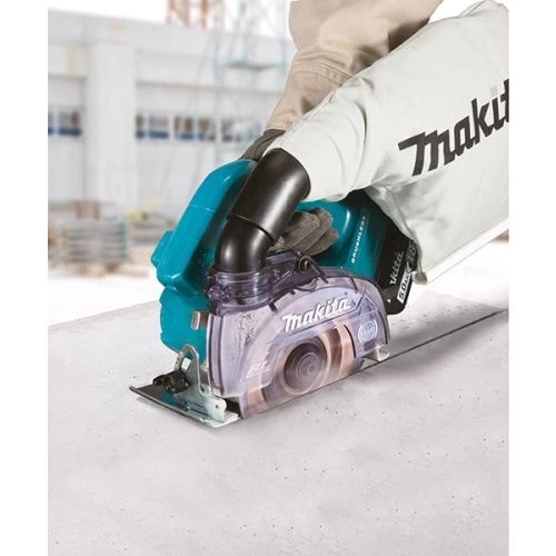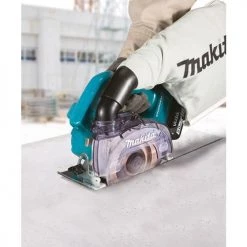 Cette scie circulaire sans fil de la marque Makita métal dispose d’un large boîtier de lame qui permet l’utilisation d’une meule diamantée incurvée AWS (Auto-start Wireless System) qui se connecte à des aspirateurs compatibles avec Bluetooth(XPT). En outre, elle est dotée d’une protection contre l’infiltration de la poussière et de l’eau pour un usage dans des conditions difficiles. Cette scie offre une coupe puissante dans la pierre, la maçonnerie, le béton et plus et contrôle automatique de la vitesse. Son éclairage LED incorporé permet une bonne visibilité de la base de travail.