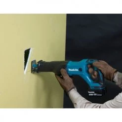 Cette scie récipro 18 V Li-Ion de Makita dispose d’un nouveau système d’entraînement, augmentant la course de la lame et le rendement, tout en réduisant les déviations de la lame et les vibrations. Elle bénéficie d’un guidage de la tige plus robuste. Dotée d’un sabot renforcé et plus rigide et d’une technologie XPT limitant les infiltrations d’eau et poussières. Le frein électrique assure un arrêt de la lame instantanée. Elle dispose également d’un bouton de sécurité pour prévenir l’activation accidentelle de la gâchette. Cette scie Makita garantit aussi un changement de lame sans outil. Pour plus de confort, cette machine bénéficie d’une poignée à revêtement Soft Grip.