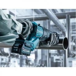 Cette scie sabre sans-fil de la marque Makita est dotée d’un moteur sans charbon pour une usure plus lente et de deux vitesses de coupe afin d’adapter la vitesse au matériau travaillé. Elle est également conçue avec une technologie XPT pour limiter les infiltrations d’eau et poussières. Cette scie sabre dispose d’un bouton de sécurité pour prévenir l’activation accidentelle de la gâchette et d’un frein électrique pour un arrêt de la lame instantanée. Pour un confort optimal pendant son utilisation, elle est munie d’une poignée à revêtement Soft Grip. De plus, un éclairage LED est intégré sur la machine pour un travail plus aisé dans les endroits sombres.