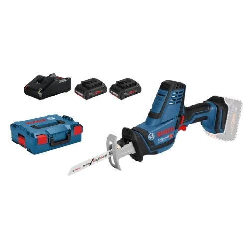 Ce pack Bosch comprend une scie sabre GSA 18 V-LI C Professional, deux batteries ProCore 18 V 4.0 Ah, un chargeur GAL 18V-40 Professional et un coffret de transport L-Boxx.