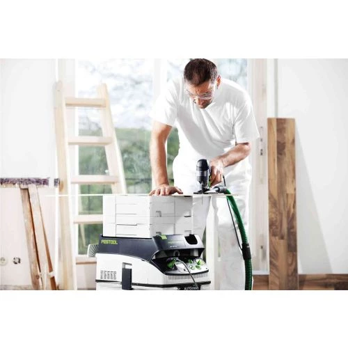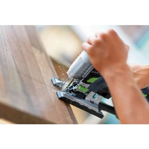 La scie sauteuse Carvex PS 420 EBQ-Plus 550 W de la marque Festool offre un comportement inĂ©galable dans les courbes grĂące Ă un triple guidage de la lame de scie et Ă la tige rigide Ă la torsion. Elle permet de travailler confortablement dans chaque position Ă l’aide du revĂȘtement Softgrip et Ă la forme ergonomique. Avec la lumiĂšre stroboscopique et l’aspiration performante, cette scie sauteuse permet des coupes bien nettes et prĂ©cises.