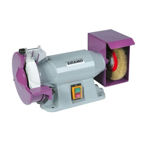 Le touret à meule avec brosse TM 200 B dispose d’un corps en fonte d’acier pour plus de robustesse et de compacité. Il est monté sur des roulements à billes étanche auto-lubrifiés. Il est conçu avec un interrupteur à bobine à manque de tension et un écran de protection en polycarbonate. La protection thermique automatique interne au moteur lui confère une durée de vie optimale et plus de résistance. Quant aux carters, ils sont en acier et sont équipés d’une buse de captage des poussières. De plus, le pare-étincelles et porte-outils sont réglables à 2 mm de la meule.